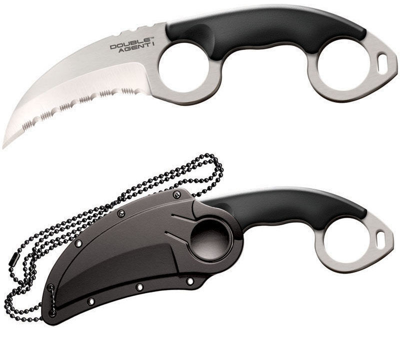 Cold Steels nya Double Agent® neck knives har en ansenlig mängd fördelar värda att nämnas. Tunna, platta och superlätta knivar utformade av Zach Whitson med blad i antingen Karambit- eller Clip Point-stil. Det mest tydliga och nämnvärda kännetecknet är designen med dubbla ringar. Stick pekfingret och ringfingret genom ringarna för ett extremt stabilt och säkert grepp.