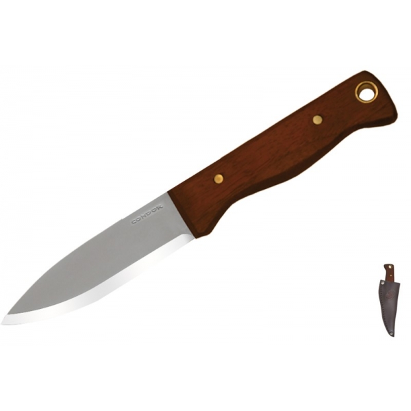 The Bushlore knife is a strong and capable mid-size fixed blade from Condor Tool & Knife. It has a 1075 steel blade with a bead blast finish and satin finished grind. The handle features riveted Hardwood scales with contoured edges. The Bushlore comes with a premium brown leather sheath.
