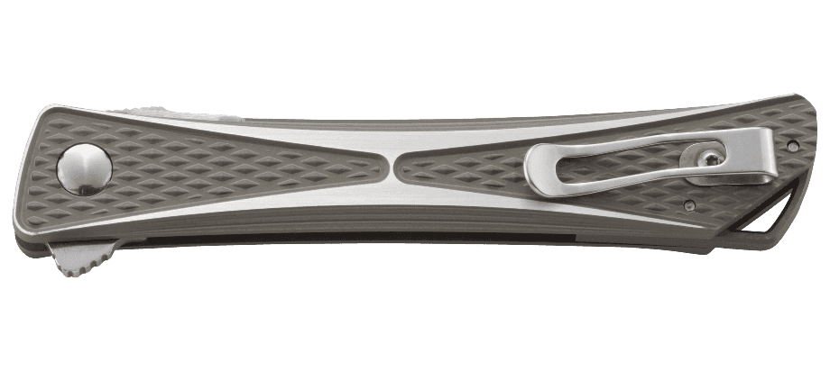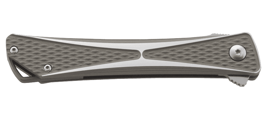The slim blade features a full flat grind and is deployed swiftly and smoothly with an IKBS™ Ball Bearing Pivot System. The brushed aluminum two-tone handle, when closed, resembles the shape of a dog bone and gives the Crossbones™ its name.