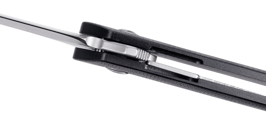 Designer Flavio Ikoma and Rick Lala invented this system that sets lubed ball bearings into the folding knife pivot. The result is rapid blade deployment that is smooth and fast.