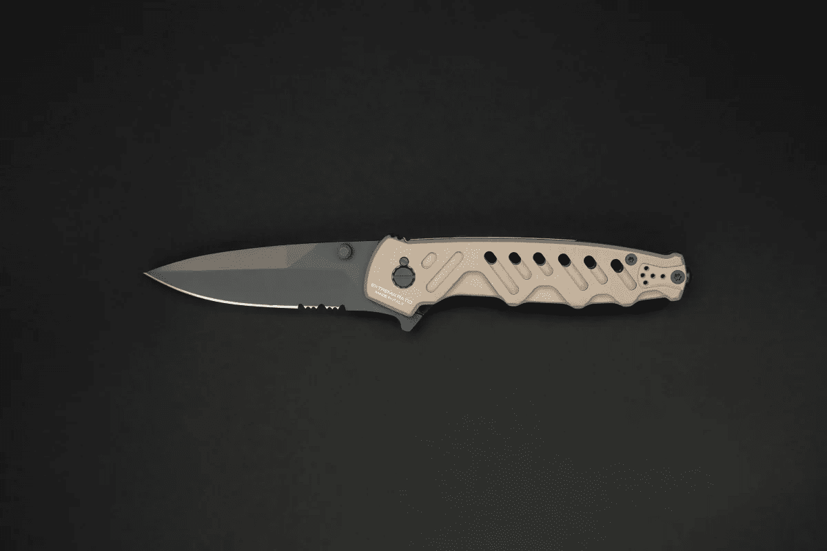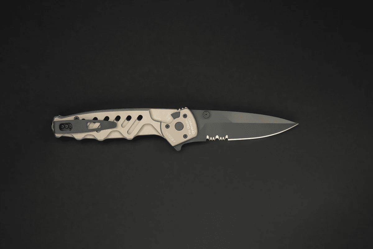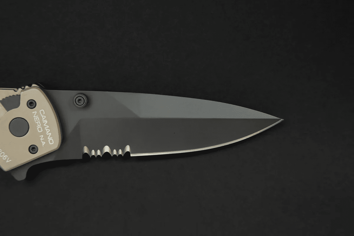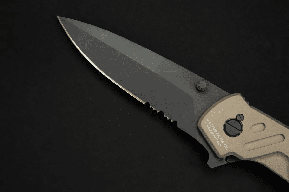 The blade, coated with MIL-C-13924 browning and 4 mm thick, has a spear-point tip with asymmetrical sharpening and is equipped with teeth that allow you to cut cables and high-resistance fabrics while maintaining its sharpness.