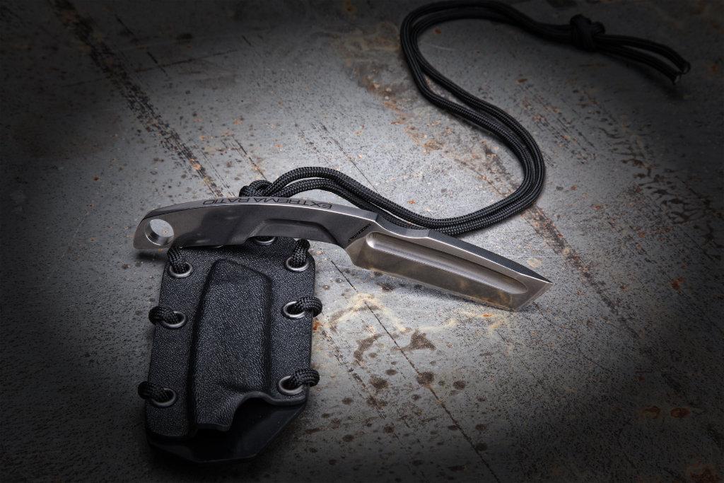 The Kydex sheath is quick-release and comes with a paracord for use as a neck knife. It can also be attached to the MOLLE system.