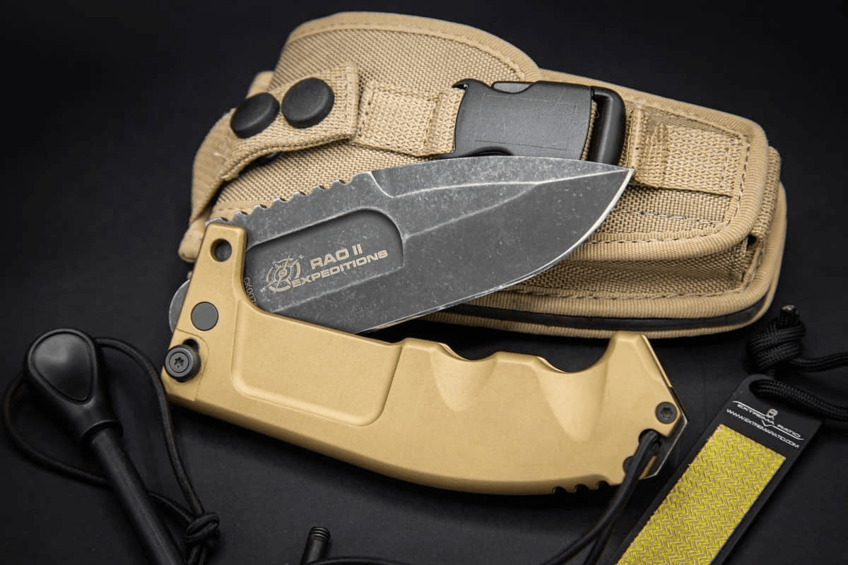 The professional tools of the Expedition series offer the same performance, reliability and high quality of all the tactical tools that Extrema Ratio supplies to military and law enforcement special forces. Thanks to its structure, RAO II Expeditions is an instrument which, despite its compact dimensions, manages to guarantee the functionality and characteristics of a product with larger dimensions and sturdiness. Like the other models belonging to the Expeditions series, the RAO II Expeditions also features the desert colored handle and sheath.