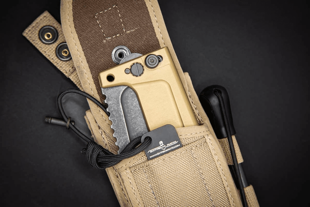 The MOLLE system of the sheath fastening system allows it to be worn on tactical vests and generic belts.