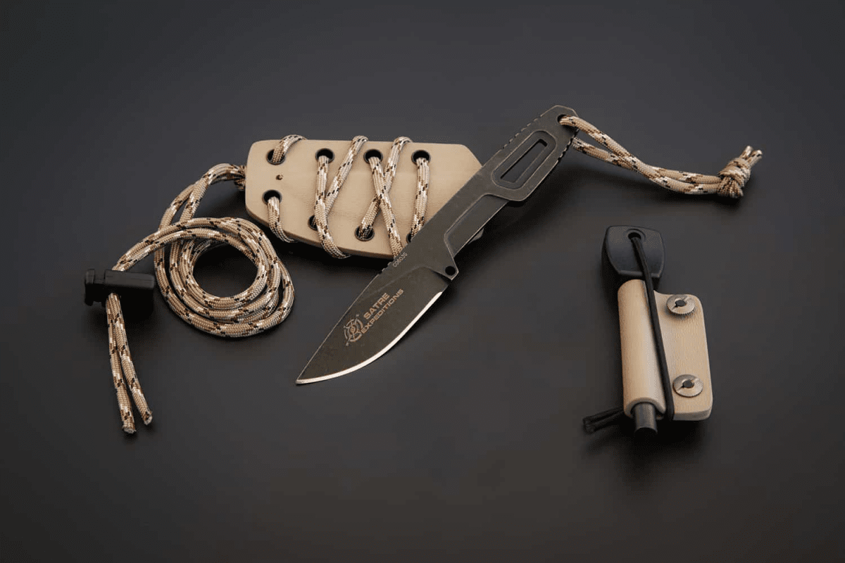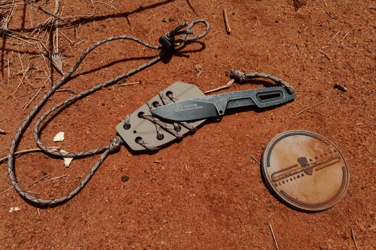 It was designed in collaboration with Daniele Dal Canto, Master Advanced instructor. In Neck Knife mode, using a 550 paracord lanyard, it is possible to keep it around the neck by keeping the knife vertical with the handle facing downwards.
