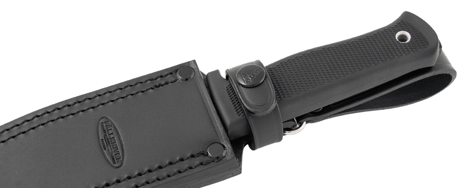 The Fallkniven A1 is an all-purpose knife on the larger side designed for heavy duty use. The powerful blade is made of extremely hard and tough laminated VG10 steel, and will withstand the stress of hard use. The knife is superb at chopping as well finer daily cutting tasks thanks to the ergonomic grip. The full tang goes entirely through the handle so you can strike with the end of it without breaking the grip. The sturdy black leather sheath allows you to fasten the knife on your belt or your pack, and even upside down. The Fallkniven A1 is unaffected by water and works equally well in extreme cold and stifling heat. Choose between a Zytel sheath or a black dangler type leather sheath with a rotatable strap.