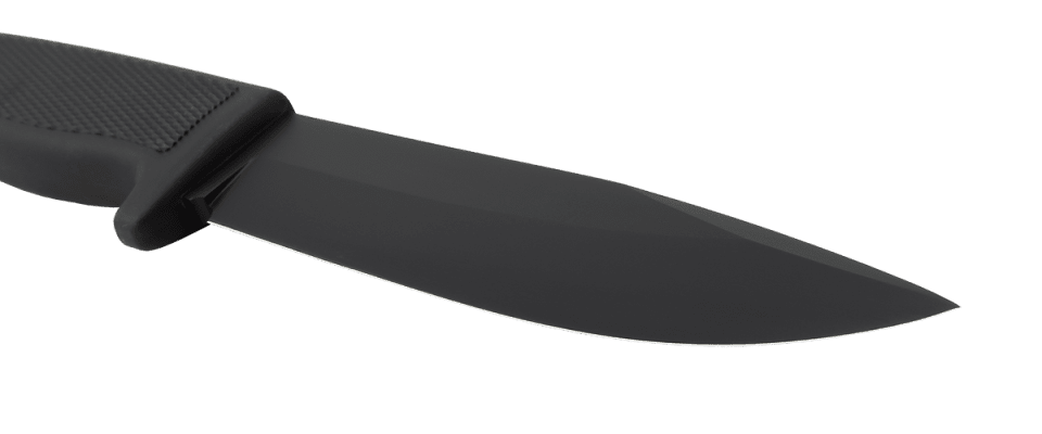 If your needs require that no reflections come from your knife blade, we offer a black CeraKote option. The CeraKote is a tough surface coating that will also protect the blade from corrosion. CeraKote is a hard coating made of Teflon and ceramics that we apply for military users and others who want to avoid shiny blades. Be aware, however, that although CeraKote is an industry standard, it is also just a finish applied to the metal blade similar to painting a car and it will gradually wear off when put to use. Please note that physical abrasions could scratch through the CeraKote coating. Over time, the black CeraKote may separate from the blade, but more durable coatings make the knife difficult to sharpen and cost up to 100 times more than CeraKote.