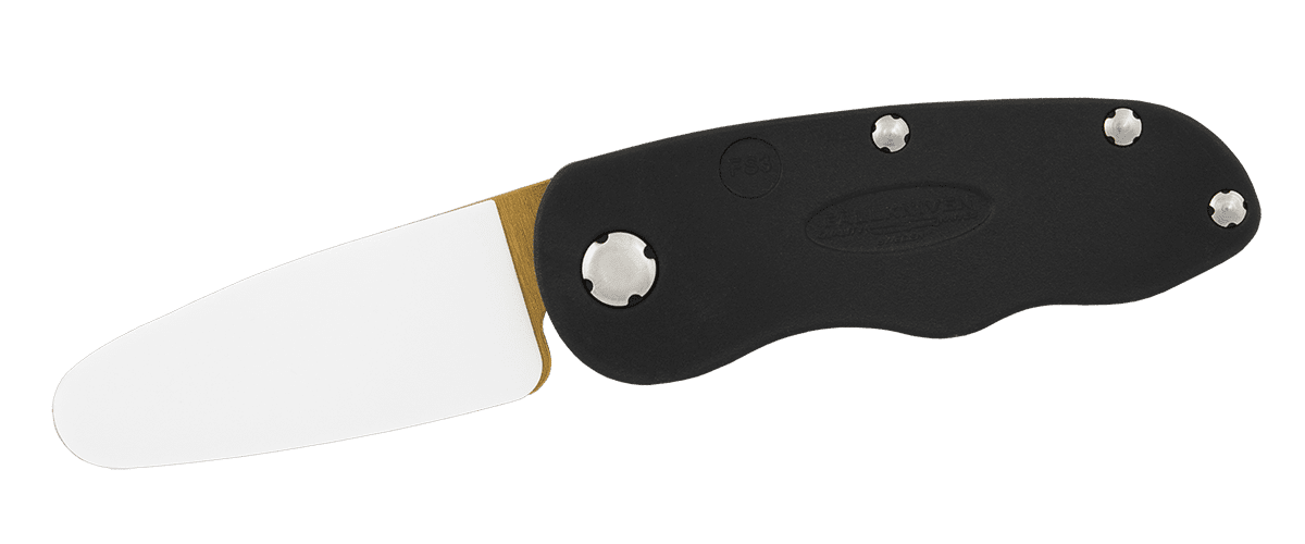 Never before has it been such a pleasure to sharpen your knife! Not only are the new Flipstones fun to handle but these diamond and ceramic whetstones will create a sharp edge on any knife. The diamond stone is coated with Titanium Alumina Nitride whilst the ceramic is made of synthetic Sapphires. Both materials are extremely hard and measure 10 and 8 on the Mohs scales of hardness respectively. They will also retain a smooth, flat surface making the sharpening process easier, even with the hardest specialty powder steels. Both stones are sandwiched together using 3M tape and cannot come apart. They are used dry, although a little soap and water can be used to clean the surface. If they feel slightly rough at first they will gradually smooth down and actually improve with age.