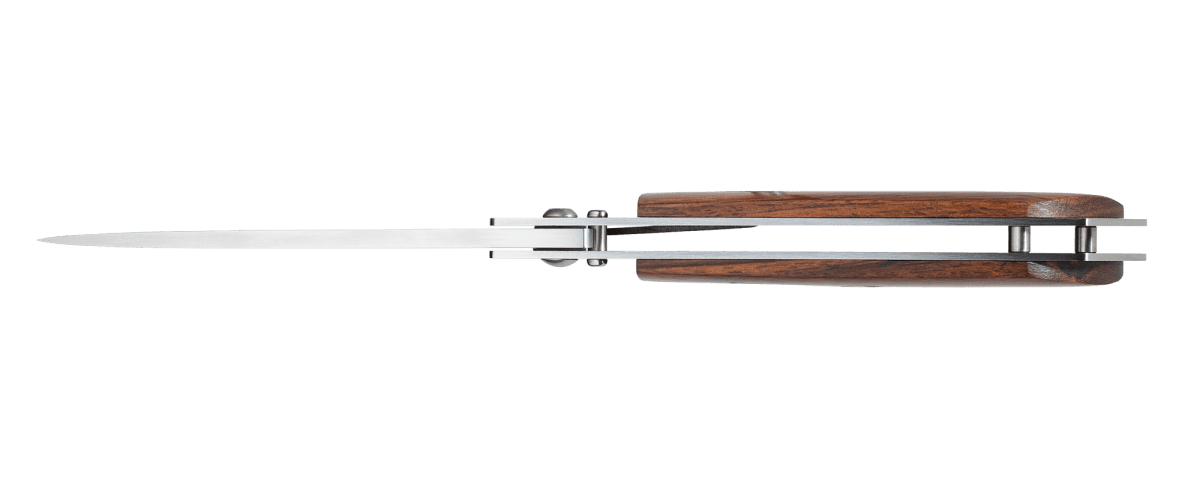 Phantom - Anniversary Model Phantom is not only a good-looking folding knife, it definitely also has the right proportions between handle and blade and of course the blade lock is of the liner-lock type. For the blade, we use an extremely advanced Swedish powder steel (Elmax from Uddeholm) which we have also given a convex shaped edge for best performance. The handle sides are from legally harvested desert ironwood from the US Southwest, a very special type of wood because it doesn’t float! The density is 1.2 kg/dm³ which also gives a handle material that is hard and durable.