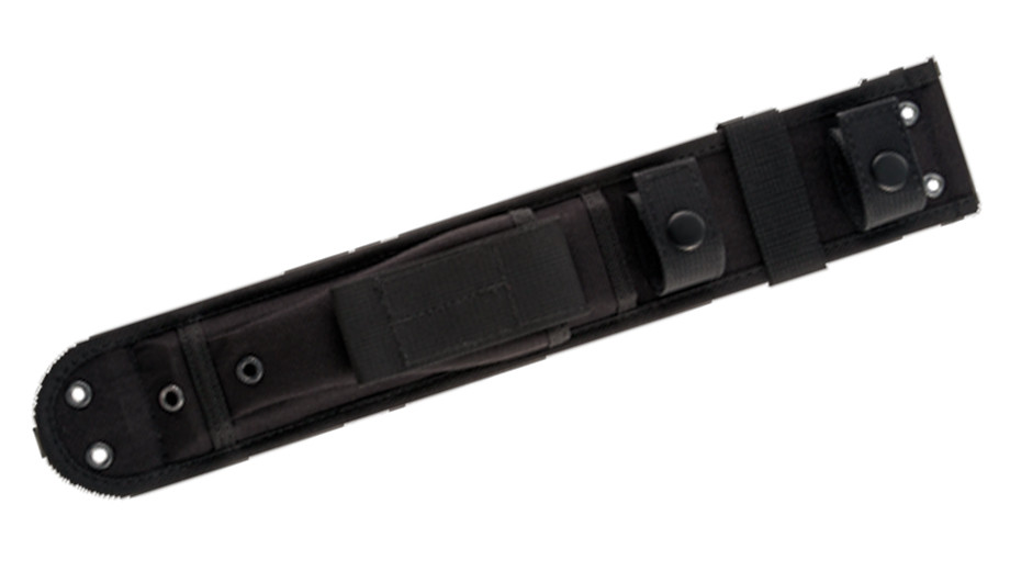 - Sold with a MOLLE compatible heavy-duty polyester sheath with front pocket.