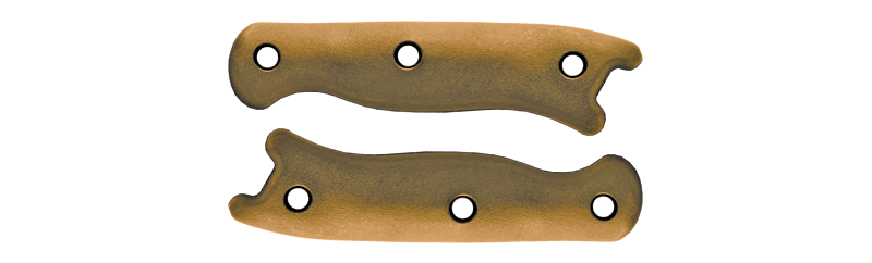 A modestly sized field knife perfect for belt or pack carry. Includes a MOLLE compatible Cordura® sheath and an extra set of brown handles.
