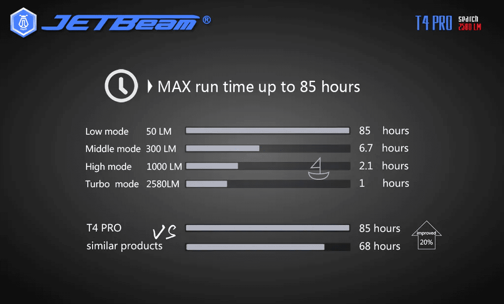 Discover the powerful NITEYE by JETBeam T4 PRO 2580 LM XHP50 flashlight. With impressive brightness and advanced technology, this flashlight is an indispensable tool for any adventure.