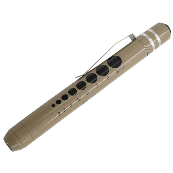 - Pupil gauge and a 5cm ruler, which is very useful for measuring pupil dilation and length