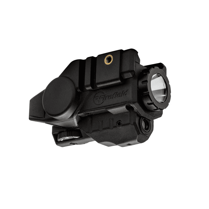 The Firefield BattleTek Flashlight with green laser (FF25018) is ideal for quick target acquisition and combat simulations while in low-light situations. BattleTek sights are compact and crafted out of a lightweight, durable glass filled nylon material and are IP55 rated water resistant, shockproof and able to stand up to a max caliber of .308. Also features a 150-lumen LED light with a strobe setting and a 5mw green laser, with a range of up to 50 yards of visibility during the day or 600 yards at night.