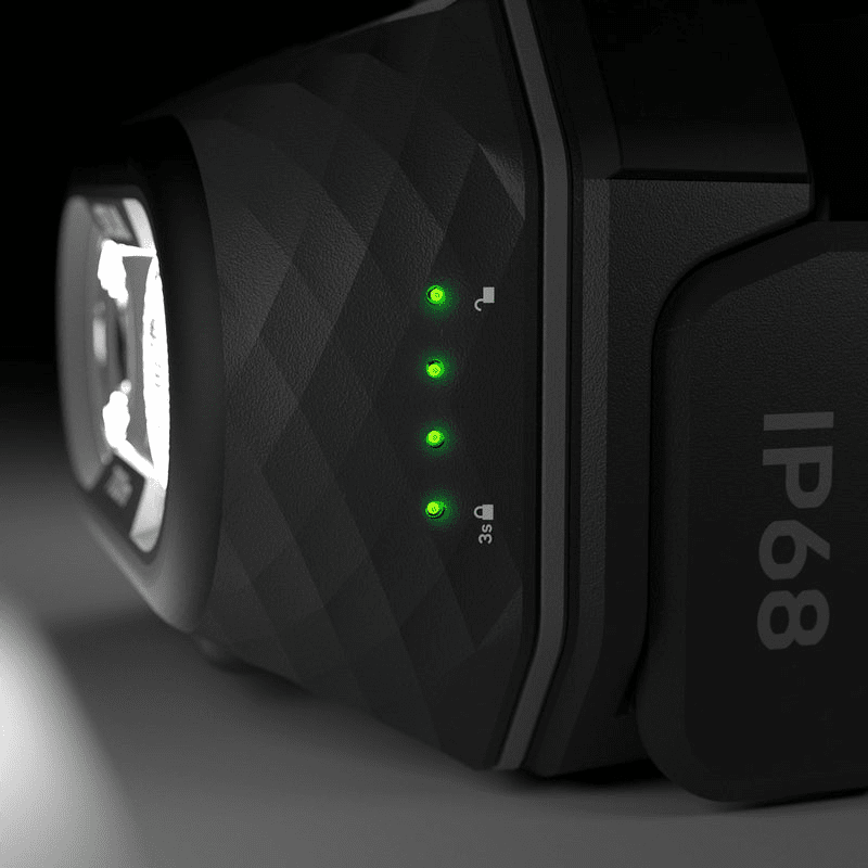 Bring your Explore 5 on unforgettable journeys and adventures after dusk. The 700-lumens headlamp comes in a dust-tight and fully waterproof (IP68 standard) design. It has a comfortable wide headband with smooth buckles for easy adjustment. The headlamp’s red light mode preserves your night vision and the orange light enables better map reading. Explore 5 also has a 4-level battery indicator and an integrated rechargeable battery.
