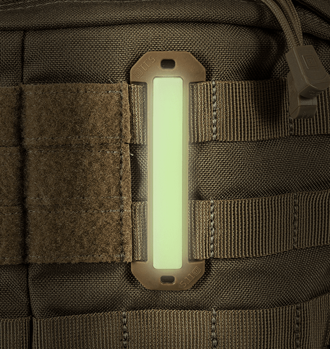 The Light Marker 2 adds a 3" x 1/2" glow marker to any MOLLE, web or HEXGRID® platform or can be lashed to any suitable item. Low-profile and low-friction, the Light Marker 2 features our environmentally friendly 5.11 Firefly Glow Technology that absorbs and then releases light, making it easier to find your backpack, bag or other kit in darkness. Glow with no batteries, no maintenance and no fuss.
