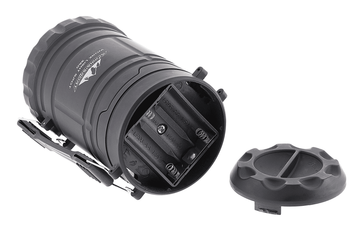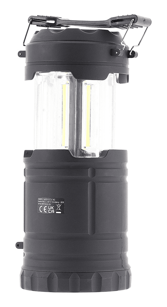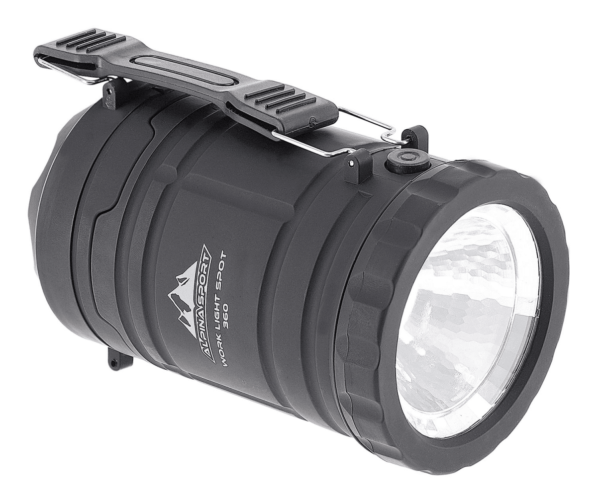 The versatile Alpine Sport Work Light Spot 360 is characterized by a wide range of applications. Use it as a classic handheld searchlight, or as a 360° lantern for work or camping use by simply extending the 360° insert with its COB elements from the upper part of the lamp. Three standard AA batteries (1.5 V) are used as the power source.