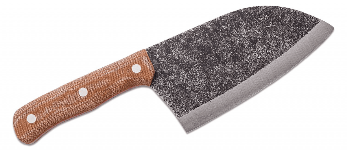 Goran Mihajlovic is a Serbian-born adventurer and knifemaker, who has lived in the Amazon Jungle for over two decades. He regularly uses a Serbian Kuvar Cleaver that he made himself, and with the experience that comes with daily use in the rainforest, designed his own based on traditional knife techniques and style. The thin 0.1” thick 1075 blade works both vegetable and meat well, and it comes with a high-quality leather sheath for storage and transportation.