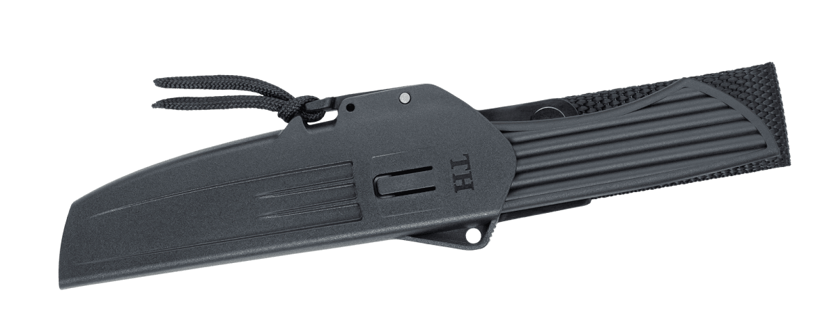 What is a bit special about these knives is the very secure plastic sheath where a specially designed locking system ensures that the knife is properly locked when it is placed in the sheath. It works regardless of weather and wind, sand or snow.