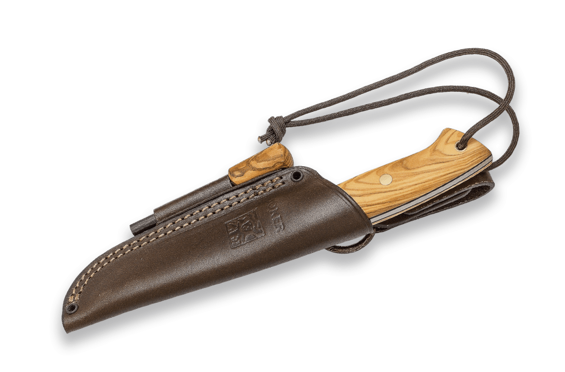 The Joker Ranger Knife with ferrocerium is an ideal versatile tool for outdoor enthusiasts. With an 11 cm 14c28n steel blade and an olive handle, this knife offers durability, elegance and a safe grip. Its ubiquitous design ensures greater resistance and durability, while the vaquetilla case adds additional functionality to protect the blade and facilitate its transport. With a total weight of 175 grams, this knife is lightweight and easy to handle, making it a reliable tool for any bushcraft adventure. Designed and manufactured in Albacete, Spain, this knife is perfect for any outdoor activity, offering a perfect combination of durability, performance and style.