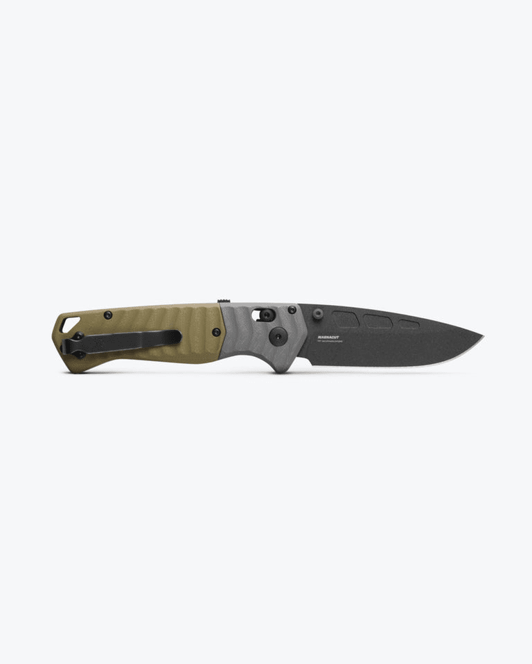 For the outdoor enthusiast who prefers to carry a hard-use folder for camping tasks and survival experiences, the 593BK P.S.K.™ is your Personal Survival Kit in one tough and rugged lightweight bushcrafting tool. Built sturdy with full liners and outfitted with a textured gray G10 bolster and OD green G10 handle housing a strong, corrosion-resistant CPM-MagnaCut blade with a Cobalt Cerakote finish. The palm-filling P.S.K.™ includes rapid and reliable AXIS Assist actuation with integrated spine safety and a dedicated striking choil at the base of the blade for fire starting with a ferro rod. If you like to carry an auto outdoors but are restricted by your region, the 593BK P.S.K.™ is the perfect alternative for efficient and ambidextrous one-hand deployment.