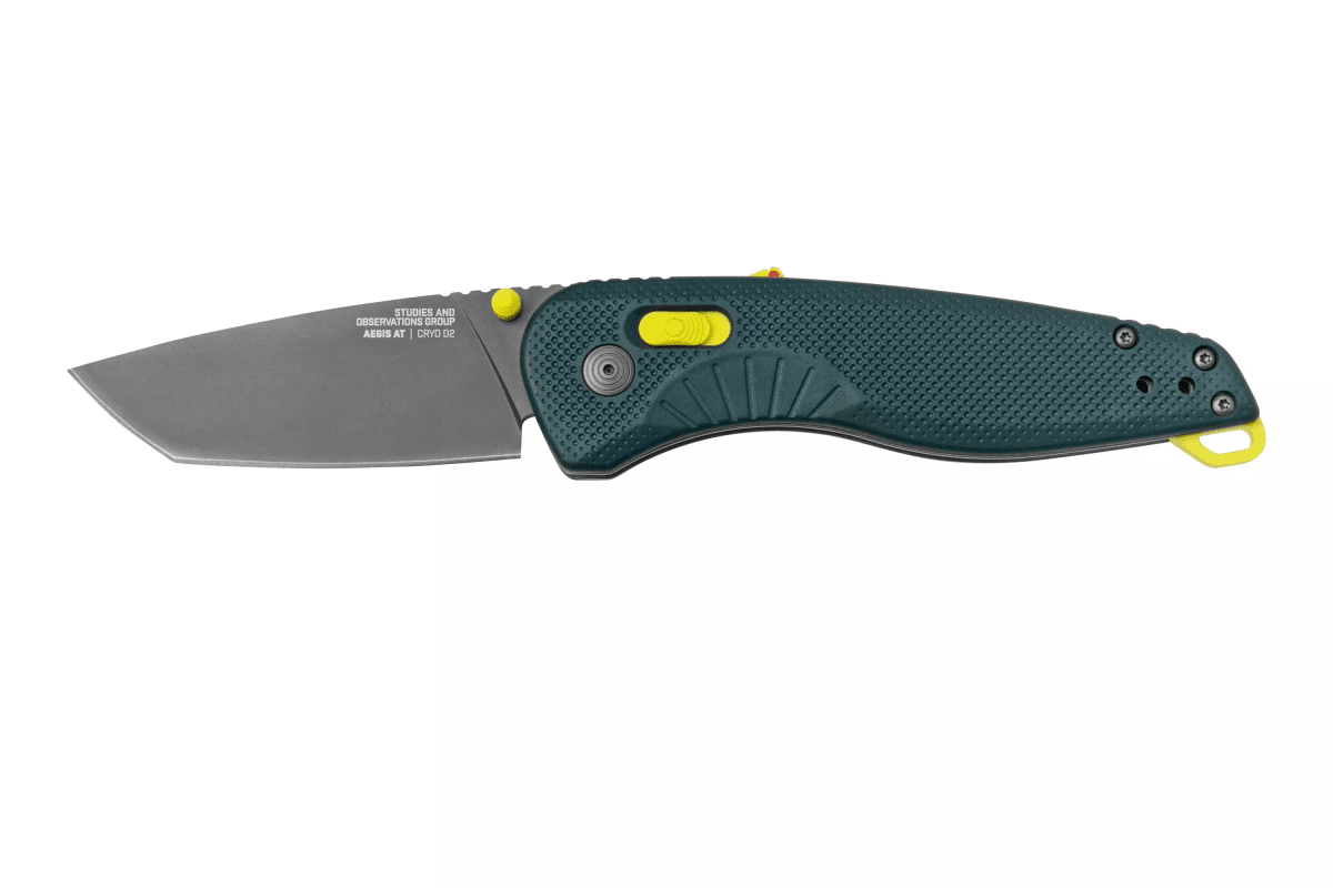 Designed for outdoor users, Aegis AT Tanto is an assisted opening knife that features SOG’s innovative ambidextrous AT-XR Lock with an ergonomic handle and grip pattern for comfortable use. Aegis AT is a pocket knife that is easy to carry, with a highly functional 3.1" cryogenically heat-treated D2 steel blade. Its powerful XR locking mechanism also features solid built-in blade locking safety and spine-mounted safety system. The next evolution of the legendary Aegis folding knife.