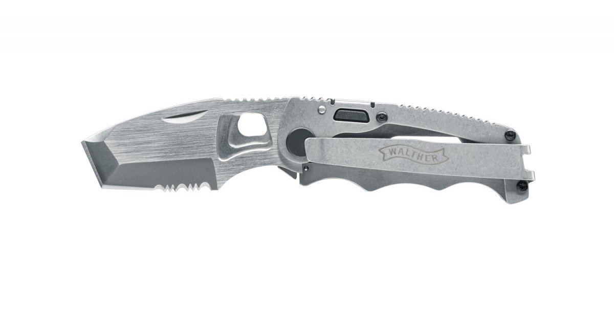 The CFK, which bears the renowned Walther name, has, of course, a great grip to complement its tough pocket clip and the adjustable thumb stud that allows the user to customize the opening of the CFK. Quick access is a given with the use the pocket clip or the included nylon holster to safely secure the CFK when not in use.
