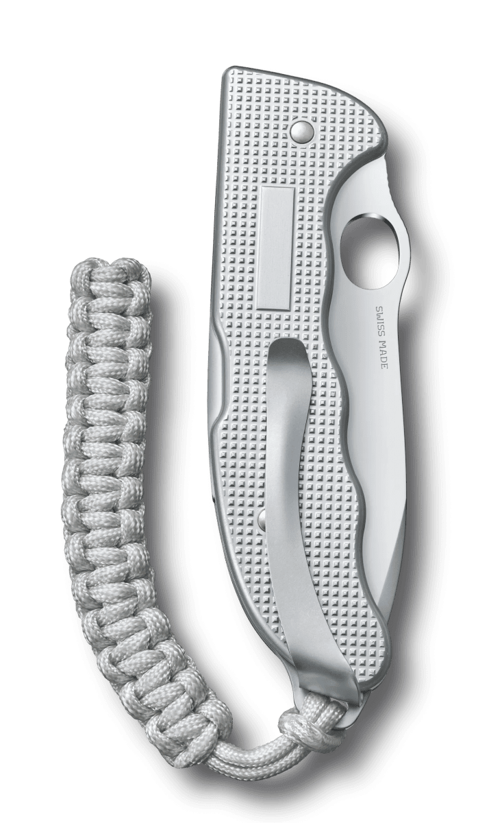 Built for discovery and wanderlust, the latest incarnation of the Hunter Pro adds sophistication and slick looks into the mix. Featuring the ribbed Alox scales synonymous with our Pioneer collection, this design adds a more tactile, multi-dimensional finish. The curved clip slots seamlessly onto the layer behind the scale for easy attachment to any garment. And the spring-integrated lanyard hole and woven silver paracord pendant prove it’s refined, yet highly robust.
