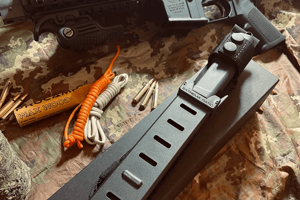 The sheath, MOLLE compatible, is in shockproof nylon with a conical opening for quick insertion and extraction and a system that prevents shaking noises, it is equipped with a two-button safety flap, a thigh with anti-rotation rubber reinforcement and an ambidextrous reversible safety : simply pressing the trigger releases the blade. The new line minimizes thickness and dimensions without saving on strength and safety.
