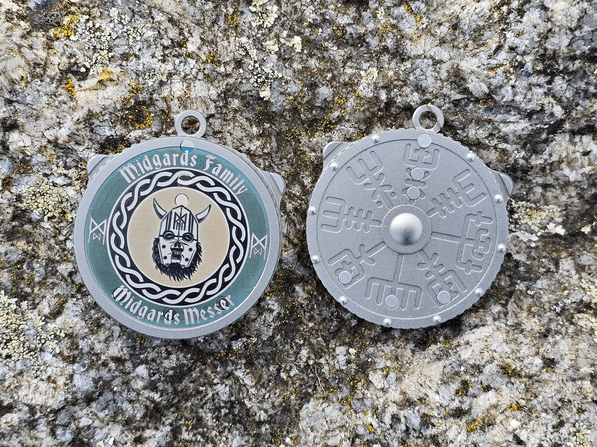 Midgards knife Coin Knife with Vegvisir engraving one side.