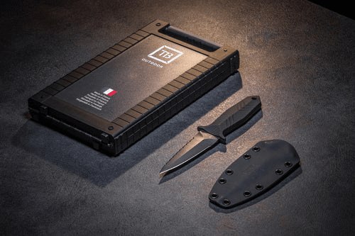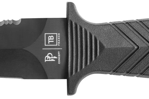 Consisting of a full tang blade overmolded in fiberglass-filled polymer, its resistance is foolproof. The black colour retained on all the components contributes to the reduction of the visual signature while giving it an aggressive aesthetic.