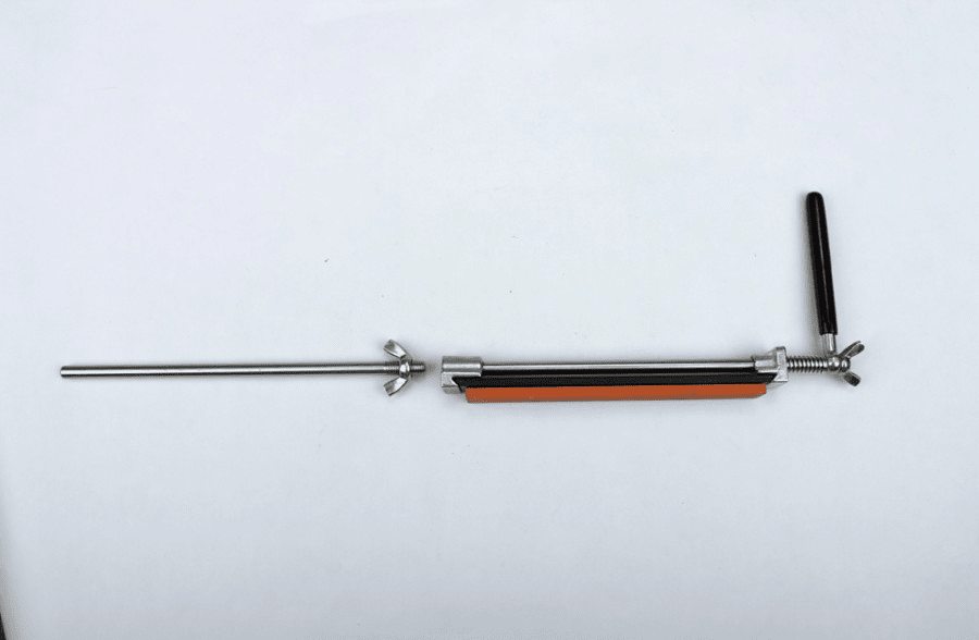 It is also important to note that the grinder Ganzo Touch Pro Steel is more compact than previous models; therefore, it is easier to transport. The grinding guide consists of two separate parts. The handle on this model is oblong with a rubber coating. Touch Pro Steel will appeal to both home workers who do not have experience in self-sharpening of knives and also professional users. The grinder provides the user with some flexibility with the whole sharpening process, by selection of the most appropriate parameter settings. The knife can be firmly fixed using a clamping plate, and in this position the use can be assured that no hands will be injured during sharpening. The blade will always be set at the correct angle of inclination.