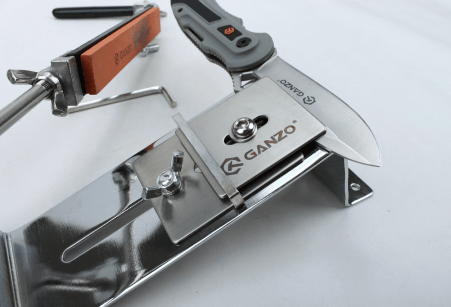The company has developed another Ganzo universal grinder, called Touch Steel. Its main characteristics being a metal structure, so there a no concerns about the strength and durability of the tool. Optionally, the user can fasten the base of the grinder to a table top or other surface and for this purpose there are special for bolts. It is of course, quite possible just to hold the tool so that it doesn’t move while sharpening a knife.