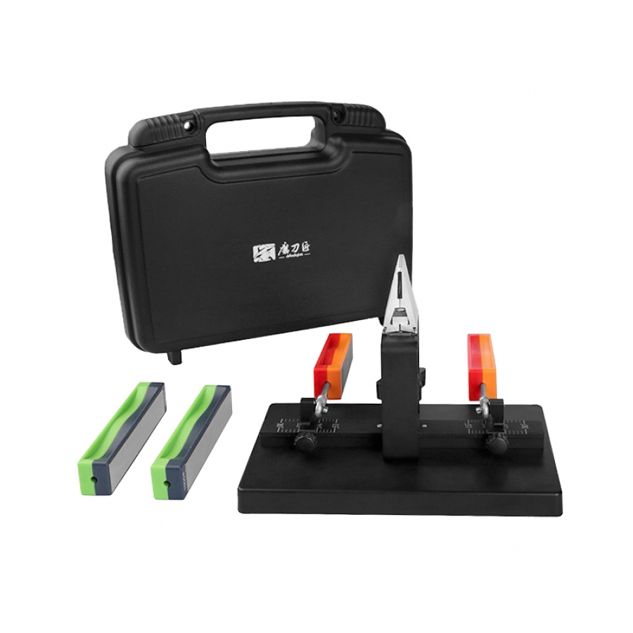 The unique clamp of the handle is designed to avoid damage to the sharpened tools and easily holds different sizes and shapes of knives. The guide allows you to choose the sharpening angle in the range of 15° - 30°. Forcing the sharpening angle and four stones with different gradations, while maintaining full control over the sharpening process, everyone is able to sharpen the knife like a professional.