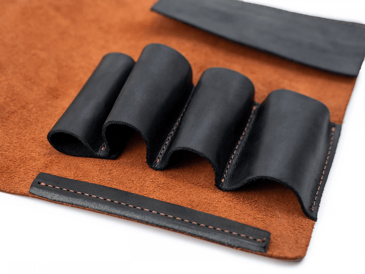 - Pockets quantity – 4 pockets and 2 additional triangle pockets to hold leather strop
