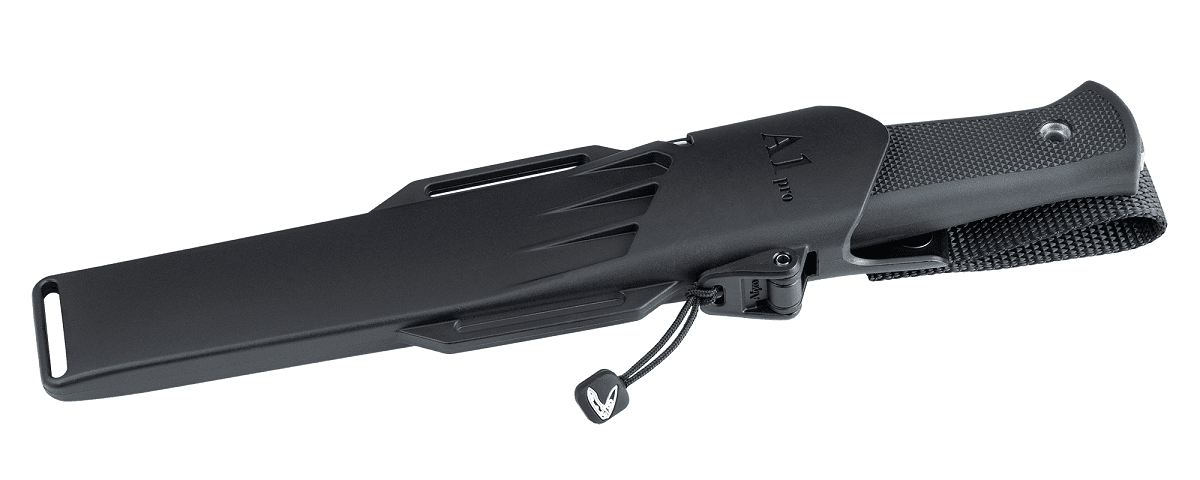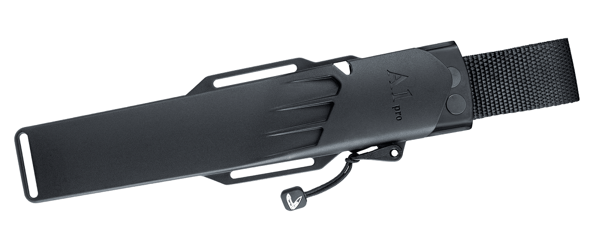 An updated Zytel sheath for A1pro with a two way locking mechanism. No strap around the handle as on our previous A1pro sheath.