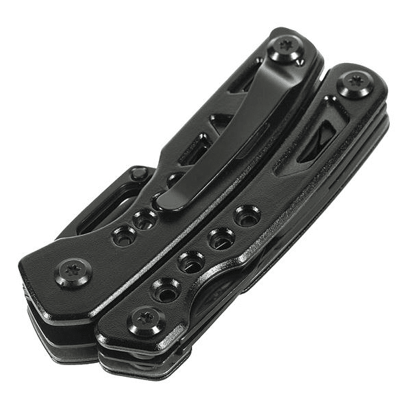 The multitool has many useful tools: needle nose pliers, pliers, wire cutters, knife, carabiner, opener, and screwdriver. All elements are tightly fixed in the open and closed positions. Due to its ergonomic shape, the multitool fits perfectly in the hand and doesn't slip while working. The stylish brand logo is applied to the handle.