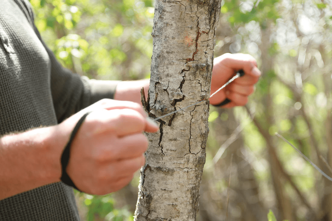 Cuts wood, plastic, bone, rubber or soft metal. Unique 8-strand design. Durable nylon wrist straps. Converts to snare by passing one wrist strap through the other.