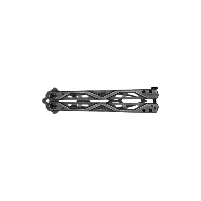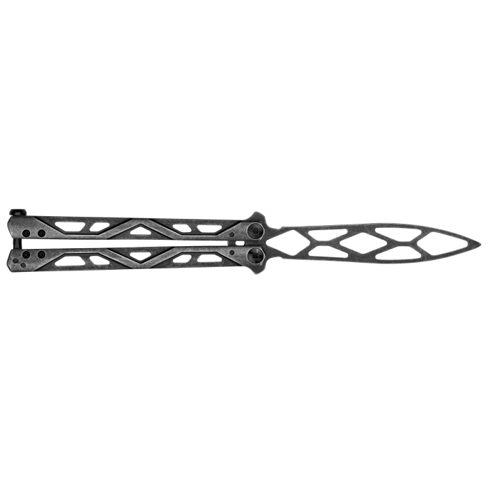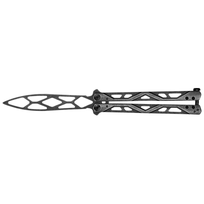 The Balanza makes flipping butterfly knives easier and more affordable for all ages. Its rounded tip and blunt edge eliminate the risk of accidental cuts. The all-stainless-steel construction is fully contoured for an excellent grip during tricks. Dual KVT ball-bearing pivots make tricks even smoother. The Balanza includes a symmetrical hole pattern in the handle for extra grip, weight reduction, and an aesthetic touch. Everything matches with an attractive all-BlackWash™ finish. Best of all, this beginner level trainer comes in at a friendly price, an ideal entry point into the hobby.