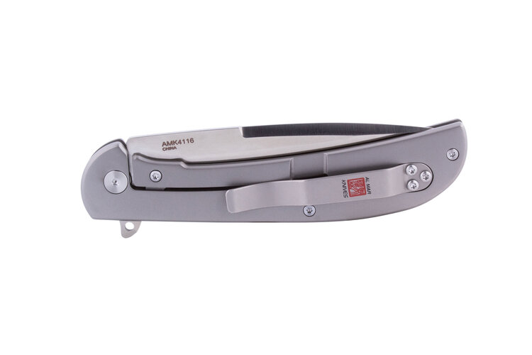 Al Mar Ultralight™ är bevis på att en kniv av hög kvalitet och styrka inte nödvändigtvis måste vara stor och tung. Denna fällkniv i Al Mars serie Ultralight™ väger endast 97 gram och är gjord i ultralätt TC4 titanium. Bladet är gjort i sandblästrat D2 verktygsstål.