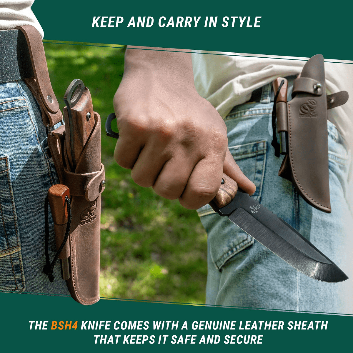 Idealisk för camping, vandring, träsnideri, bushcraft och överlevnad, BSH4_F Dusk Bushcraft Knife sticker ut med sin robusta design och överlägsna material. Den skär effektivt och behåller sin skärpa under längre perioder. Kniven levereras med en slida av skinn med bältesöglor.