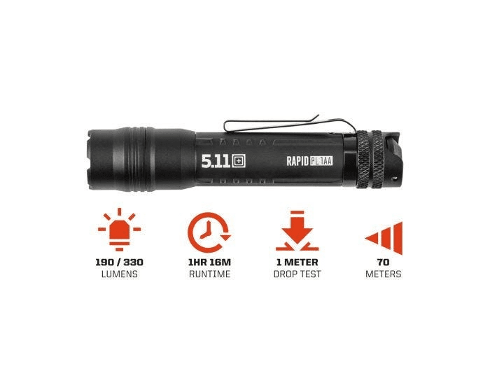 Den kompakta men kraftfulla RAPID PL1AA, passar perfekt till utryckningspersonal eller som primär för dagligt bruk, gör jobbet gjort. Denna multibränslekompatibla lampa drivs av ett standard AA-batteri eller ett 14500 laddningsbart litiumjonbatteri. Den dubbelriktade fickklämman ger ytterligare monteringsmöjligheter att fästa på dina kläder, hatt eller utrustning för att vara redo för allt som mörkret för med sig.