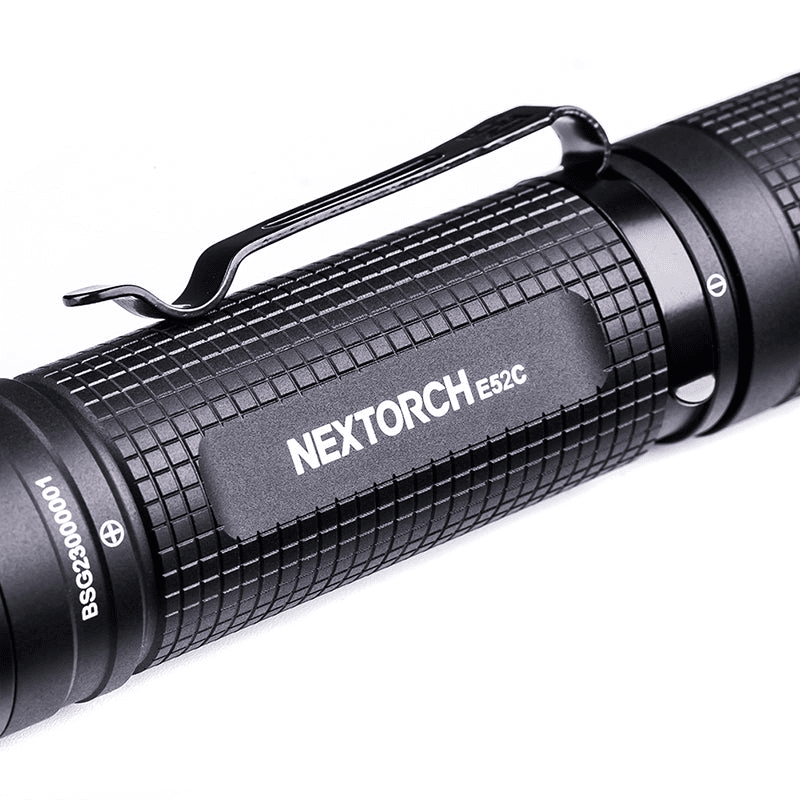 Klassisk rak design Robust och kompakt - Tillverkad av aluminium av flyg- och rymdkvalitet och bearbetad med hårdanodisering av typ III, E52C med palmstorlek ger bekvämt enhandsgrepp och flexibel användning