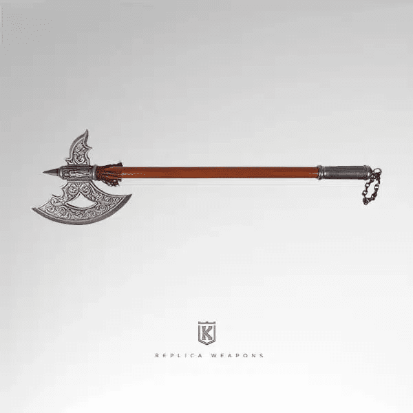 Characterised by a solid wood handle, a metal grip, and a pointed back edge, this replica by Kolser (70×20 cm) revives the solemn spirit of the Germanic lands.