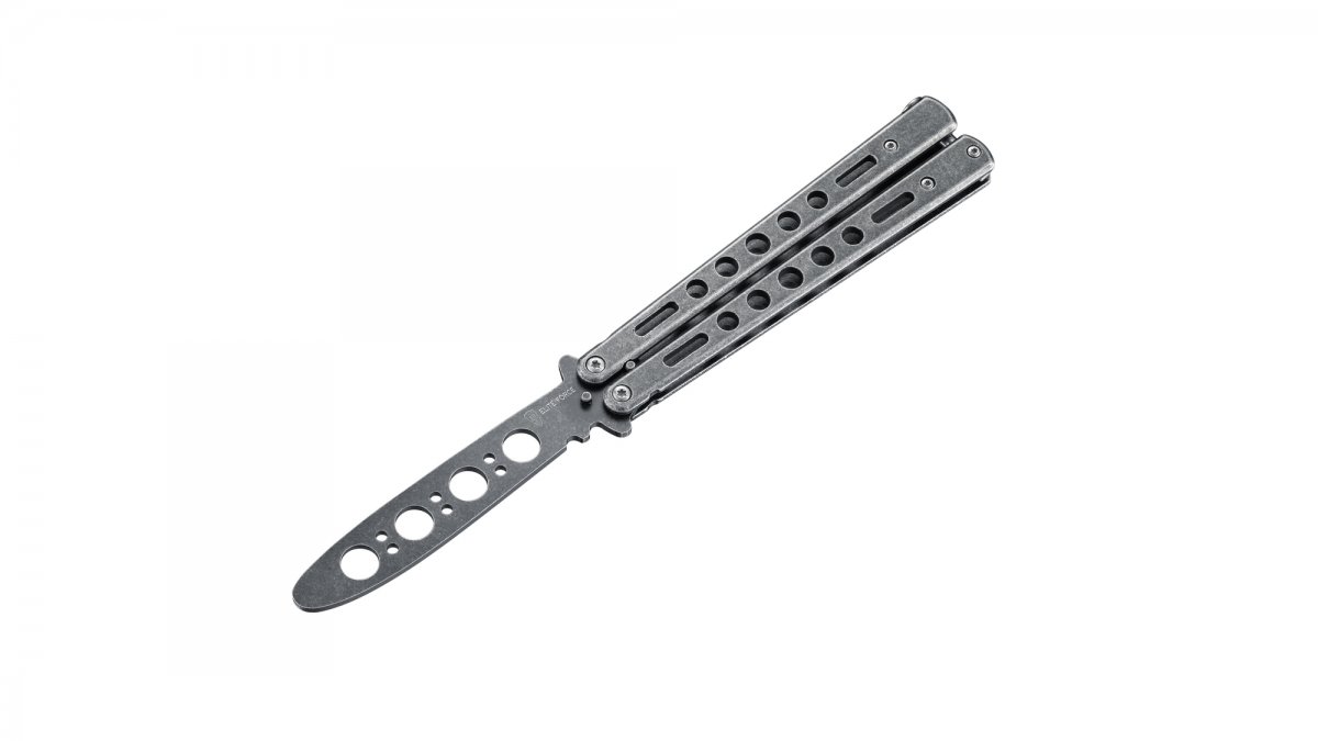 This butterfly trainer will delight all those who miss the unique feel of a balisong knife and want to enjoy the fun that comes with handling this special mechanism. It features a sturdy all-metal design with a blunt dummy blade that has no cutting edge and cannot be sharpened. With a spring-loaded T-latch.