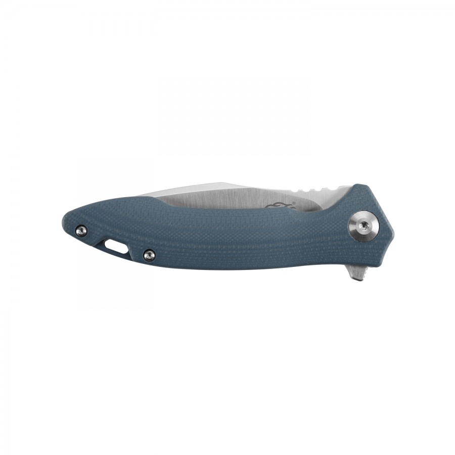 The knife blade length is 81 mm. Manufacturers configured it as Clip-point. It has a lowered butt with false blade, marked edge and rather long cutting edge. Sharpening in this model is smooth along the whole length. There is a notch closer to the handle on the low part of the blade, and on the top part there is a ribbed area, which protects from slipping of fingers during work with a knife. The blade color of this model is kept natural grey. The metal is grinded by a popular satin finish.