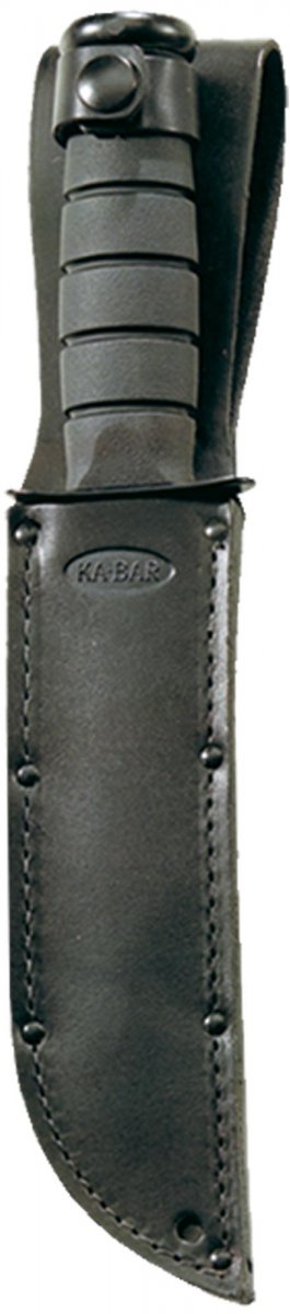 Practically sized knife with 133mm blade intended for all utilitarian uses. Tang stamped USA. Leather sheath included.
