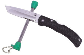 A handy pocket-size sharpener specially designed for the proprietary serrations used on Cold Steel® brand folding and fixed blade knives. The special grooves exactly match the mini serrations. Safety thumb rests and keychain keep the sharpener always ready to serve at home or in the field.