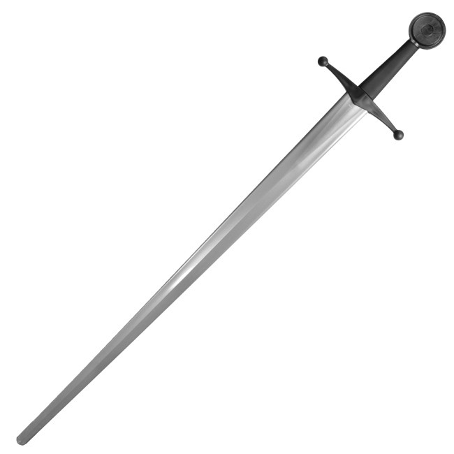 Ett välbalanserat syntetiskt svärd för träning och sparring. Realistiskt utseende med en säker design som även gör svärdet mycket lämpligt för teater och TV.Svärdets klinga är designat med högsta flexibilitet närmast spetsen vilket ger mycket säkrare stötar än traditionella övningssvärd i trä eller hårdare syntetiska material. Klingan är även förstärkt med en stålskena som löper genom hela tången. Den här förstärkningen eliminerar även den ovälkomna flexibiliteten i handtaget som har plågat många plastsvärd.Parerstången är tillverkad med förstärkt och mycket tålig plast och har samma dimensioner som äkta förlagor från 1400-talet.Greppet använder ett gummiliknande material i termoplast designat för att effektivt absorbera och dämpa stötar.Svärdsknappen är tillverkad med stöttålig plast och har ett skruvhål i mässing för en stabil och säker koppling till bladet.Tillverkas i Storbritannien.