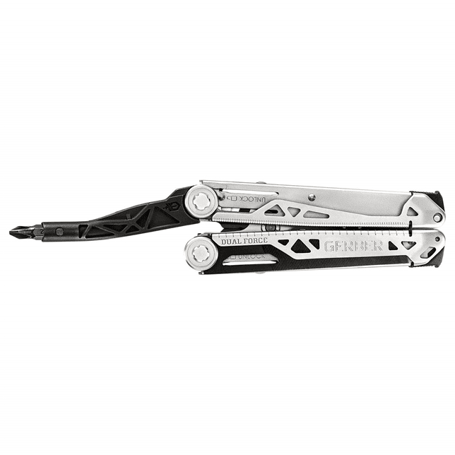 För tuffa jobb är det ofta enklare att gå tillbaka till verktygslådan efter en ordentlig uppsättning tänger—tills nu. Dual-Force är inte ditt genomsnittliga multiverktyg, utan skryter med lagerkonstruktion för att erbjuda 2x käkkraft och 2x styrkan för att hantera vilken uppgift som helst som ställs framför den. Den justerbara 2-läges skjutledskäften och extra stora tänderna greppar fast på en mängd olika fästelement och tillämpar oöverträffad kontroll. Ytterligare funktioner inkluderar en mittpositionerad bitshållare, knivblad med slät egg, fin/grov fil, såg och extra bitsförvaring.